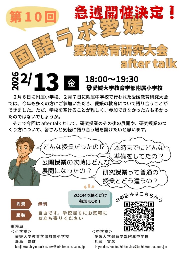 研究大会の「その後」をみんなで振り返りながら、日々の国語科の実践につながる時間にできればと考えています。どうぞお気軽にご参加ください。